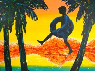 Mariño’s works are stunning, characterised by his distinctive and highly saturated colour palette - bright oranges, yellows, pinks that are contrast with deep, dark shadows. These new works focus particularly on landscapes of isolated human figures surrounded by palm trees, seas, lakes and mountains, giving works such as The Wanderer and The Sea Walker an appearance reminiscent of a dream or childhood memory which leaves the paintings with a mysterious aura.