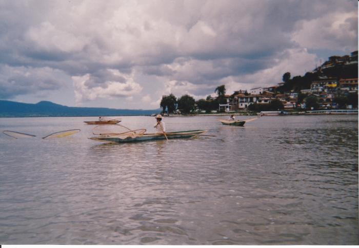 Fishermen on Lake Pátzcuaro, Michoacán, which, along with Jalisco and Guanajuato, is the source of most migration to the US. Photo: Georgina Jiménez