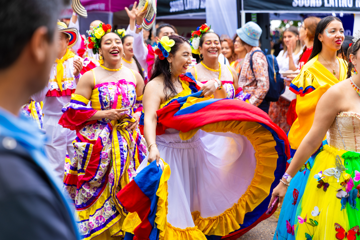 The Big Dance Extravaganza at LatinoLife in the Park is one of the biggest dates of the year for the amazing folk dance groups of London. Representing over 10 of the 20 countries in Latin America, from Tijuana to Tierra del Fuego, the parade of over 500 people of all ages is a veritable kaleidescope of colour, movement and sound. In a display of Latin American folklore that is unparallelled in the UK, nowhere else do so many Latin Americans congregate to show off their traditions and culture, dressed in the most elaborate and astounding costumes you’ll see, most of them imported from South America. Many of those in the parade are children and young people so it is really inspiring to see how they engage in their identity and culture with such pride