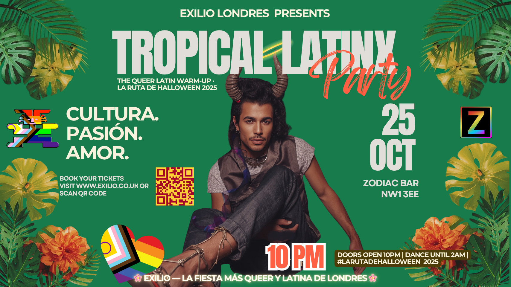 Step into your home away from home 💕 — the first stop of La Ruta de Halloween 2025, a trilogy of tropical queer Latinx celebrations by Exilio, London’s legendary LGBTQ+ Latin party since 1996.