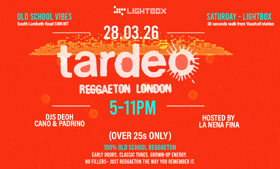 London's new Latin party for over 25s. Daytime vibes. Classic tunes. Pure old school energy. Just reggaeton the way you remember it. This is London’s Saturday afternoon reggaeton rave dedicated to the golden era of reggaeton in the heart of Vauxhall. From 5pm to 11pm Expect 100% old school anthems and throwbacks from start to finish — the tracks that defined a generation and still hit just as hard. Designed for a 25+ crowd who truly appreciate the classics and come ready to dance.